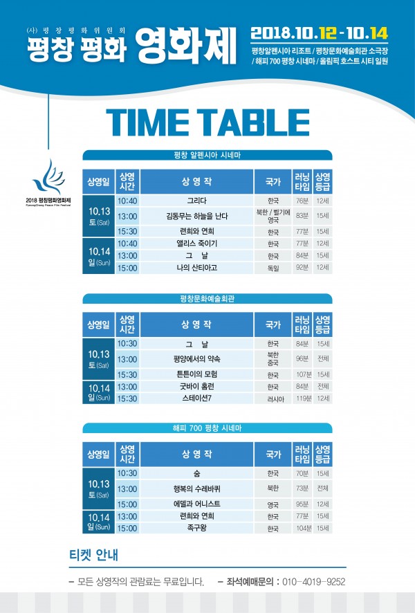 - 상영장소 : 알펜시아시네마, 평창문화예술회관, 평창해피700시네마
