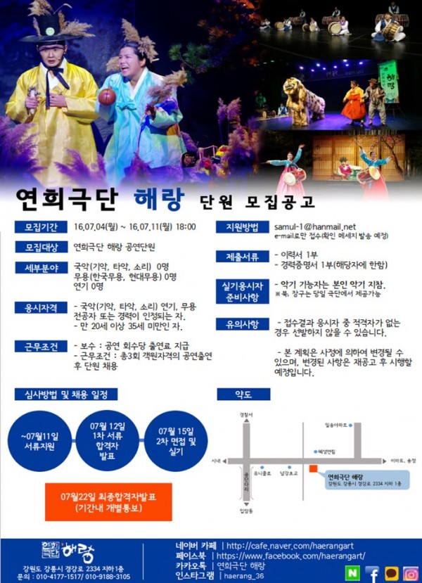 2016 연희극단해랑에서 단원모집을 합니다.
