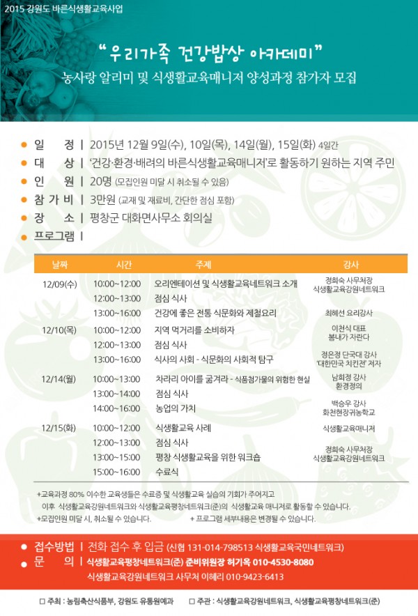 2015 식생활교육매니저 양성아카데미 모집안내